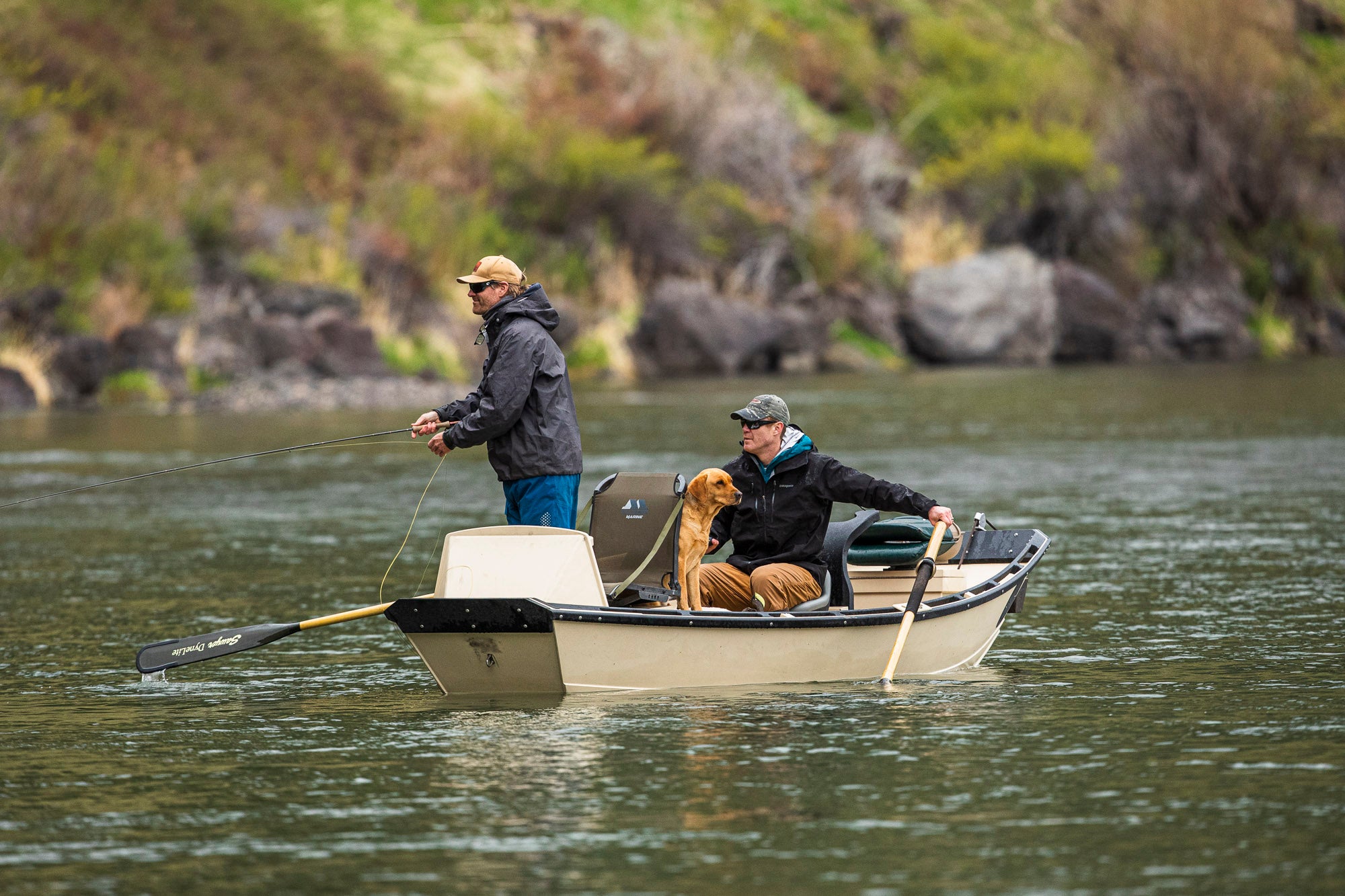 The unique blunt nose design, long centerline (16'4"), and widest beam (78" at the oarlocks) open up the interior, providing the most spacious boat in our fleet. You get maximum real estate for gear, large coolers, or your favorite boat dogs.